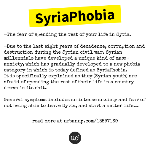 Urban Dictionary On Twitter Ghaliasx Syriaphobia The Fear Of Spending The Rest Of Your Life In Sy Https T Co 7deqdytdnj Https T Co Kwx69tscoh Twitter